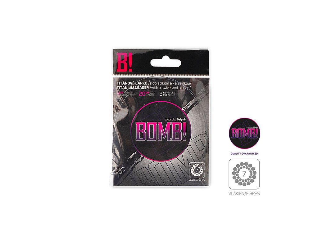 Titánové lanko je tým pravým lankem pro rybárě s najvyššími nároky. Vysoká ušlechtilost a špičkové vlastnosti sú u tohoto produktu samozřejmostí. Tohle lanko je špecifické svojou výnimočnou jemnosťou, ale aj nekompromisnou odolnosťou voči ostrým zubom a prekážkam! Vďaka vlastnostiam tohto lanka je s ním akákoľvek manipulácia veľmi príjemná a ľahká. Navyše jeho materiálové zloženie umožňuje nástrahu odprezentovať na špičkovej úrovni aj tým najopatrnejším predátorom! Na jednej strane lanka BOMB! sa nachádza obratlík a na druhom karabínka. V každom balení sa nachádzajú až 2 kusy tohto odolného lanka! Veľkosti obratlíkov prislúchajúce k lankám: - 20cm/4kg- obratlík # 14, karabínka # 000, 7 vlákien - 20cm/7kg- obratlík # 14, karabínka # 00, 7 vlákien - 30cm/9kg- obratlík # 8, karabínka # 0, 7 vlákien - 35cm/12kg- obratlík # 6, karabínka # 1, 7 vlákien - 45cm/17kg- obratlík # 5, karabínka # 2, 7 vlákien - 45cm/20kg- obratlík # 4, karabínka # 2, 7 vlákienDoplňkové parametry