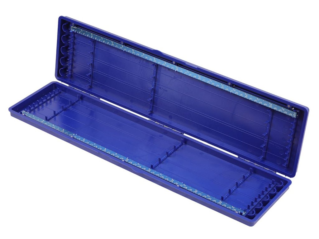 Navrženo pro uskladnění již kompletních návazců. Vyrobeno z tvrdého plastu, který je uzamykatelný pomocí magnetů. Udrží natažené návazce do délky 50 cm, nebe přeložené pak do délky 60, 75 až 100 cm. Ohnutí návazce jde přes půlkulatý profil, nehrozí tedy žádné poškození. 16 mm kolíčky. Specifikace: - rozměry: 14 x 55 x 3 cm - barva: modrá - tištěné logo GNT Match & Feeder Case TRABUCCODoplňkové parametry