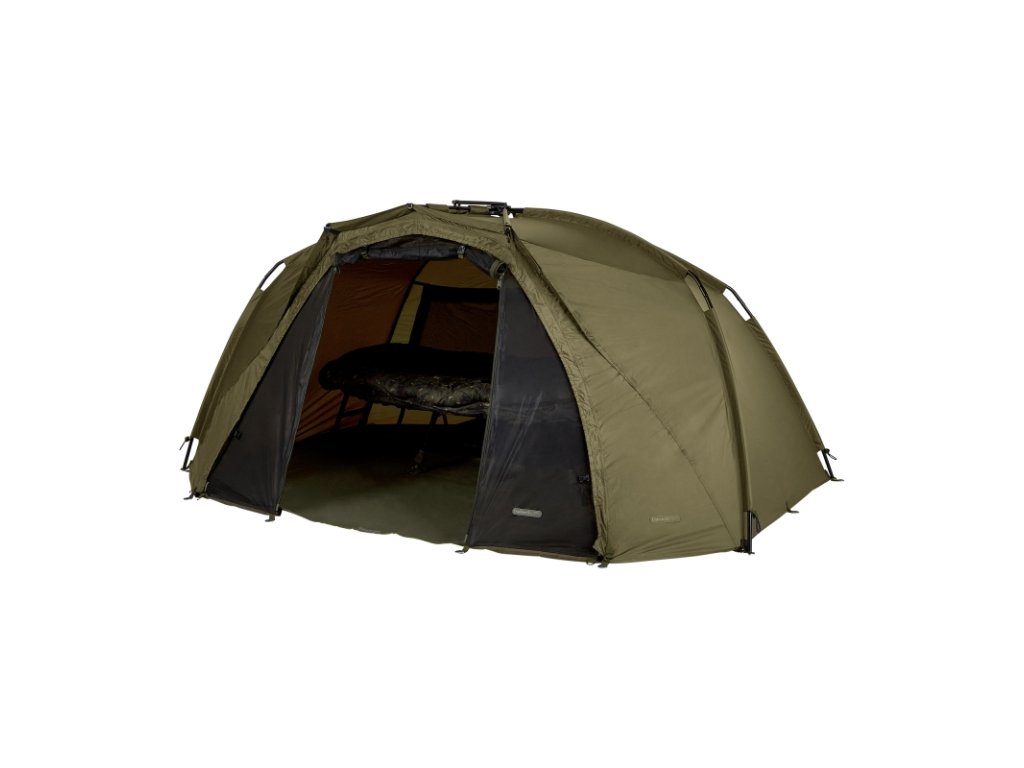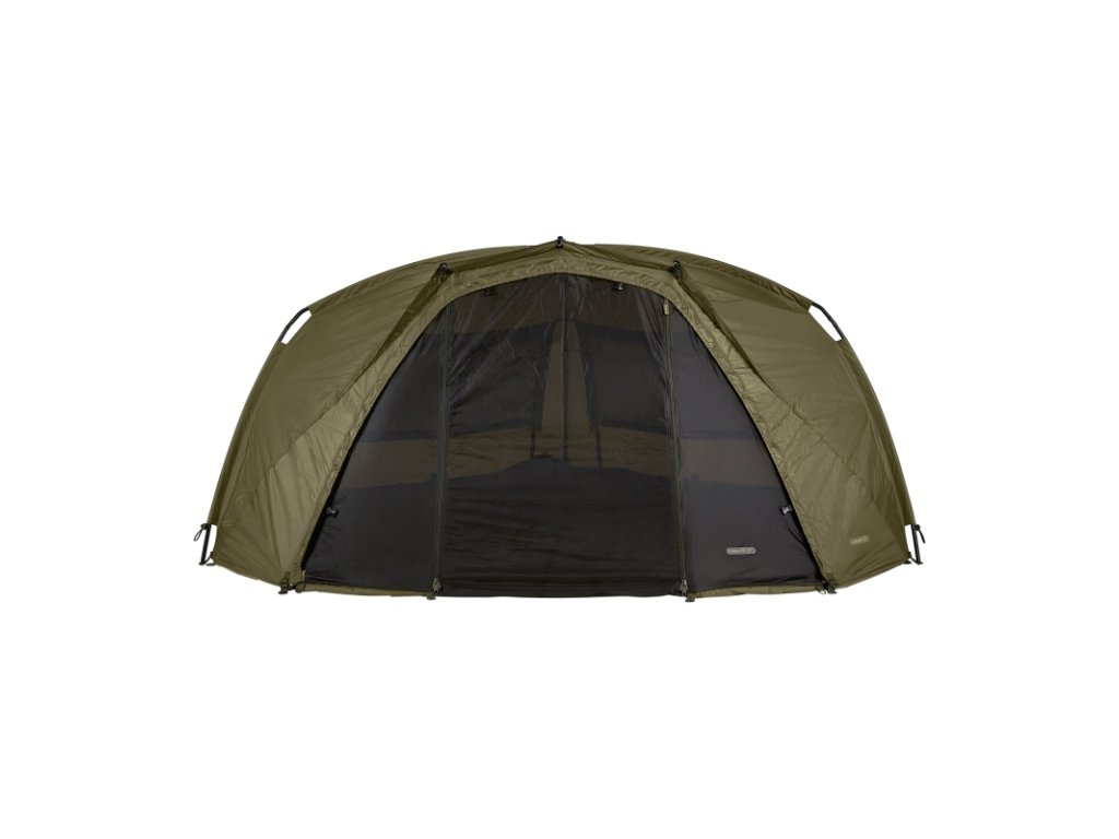 Namísto srolování dveří a postranních panelů na klasickém předním panelu nasaďte na předek bivaku tento panel, který nebude bránit dobrému výhledu z bivaku. Na panelu naleznete úchyty na srolování dveří a postranních panelů. Je dodáván s přepravní taškou a T-peg kolíky.