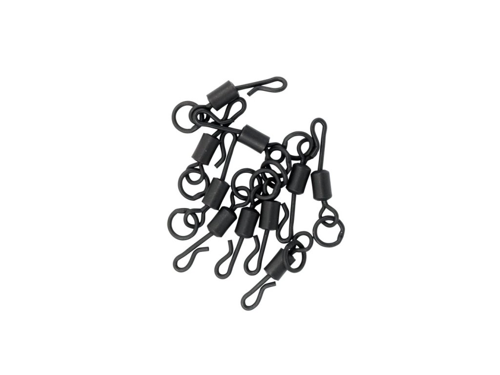 QC Ring Swivel je rychlovýměnný, antireflexní obratlík s kroužkem, hodící se pro většinu kaprařských návazců. Vlastnosti produktu silný a odolný ideální pro helikoptérové montáže, kde můžete rychle vyměnit návazec snižuje kroucení a zamotávání vlasců nebo šňůr antireflexní, matná, černá ochranná vrstva Technické parametry Balení: 10 ks Velikost: 8Doplňkové parametry