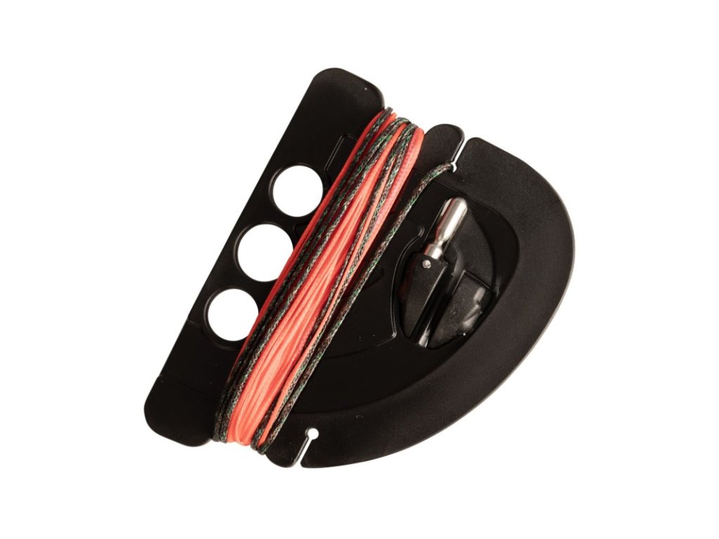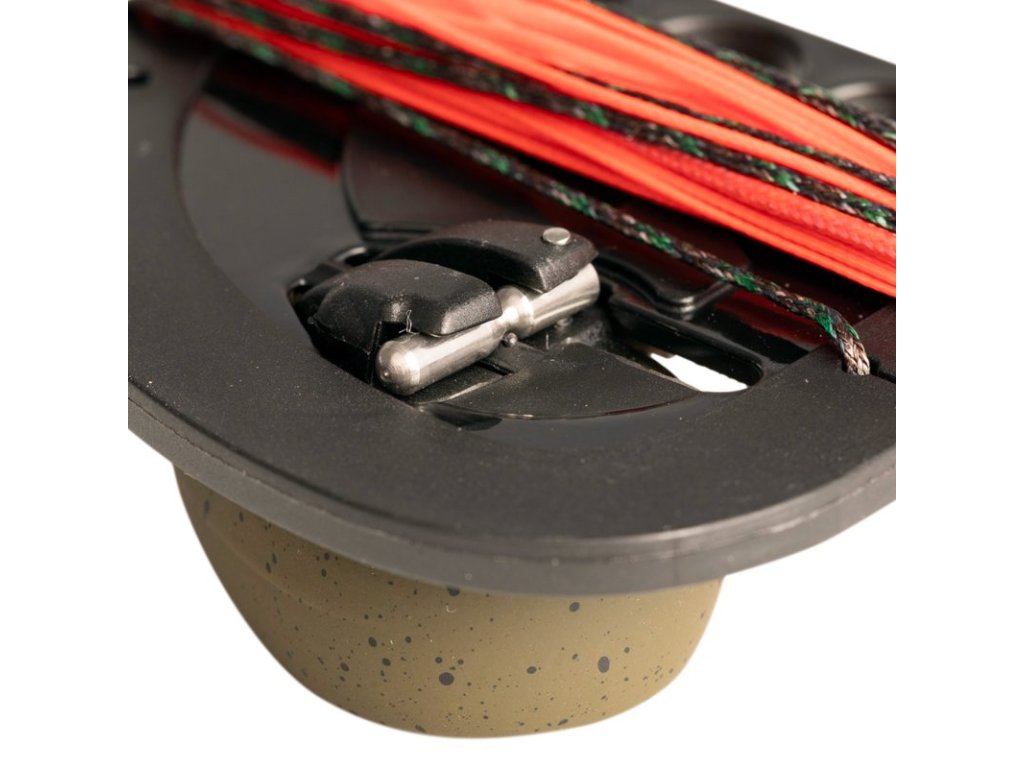 Držák šňůry lze připevnit za přídavné „uši“ signalizátorů, umístit jej pod signalizátory záběru nebo jej zapíchnout do země. Při balení jednoduše navinete šňůru zpět na cívku a závaží pohodlně zacvaknete do slotu pomocí západky pro snadné skladování.