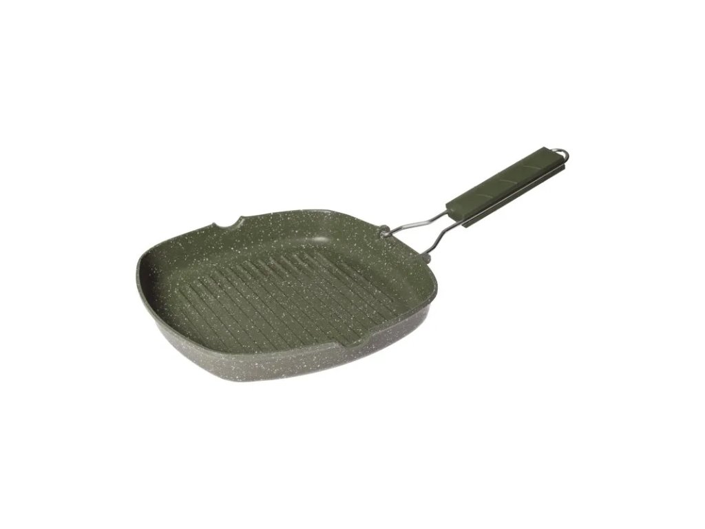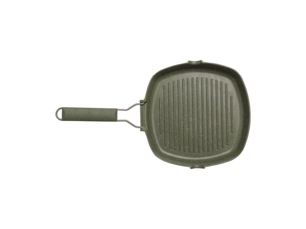 Uvařte si svá oblíbená jídla přímo na břehu s grilovací pánví Trakker Armolife Marble Griddle, která je ideální pro výrobu šťavnatých hamburgerů, prskajících klobás nebo grilovaných steaků. Pánev umožňuje vařit jídlo zdravěji díky sběrným kanálům pro odvod tuku. Základna pánve usnadňuje rovnoměrné rozložení tepla a speciální mramorovaný povlak zabraňuje přichytávání jídla, což umožňuje snadné čištění po vaření. Pánev má také skládací rukojeť pro snadnou přepravu. Vlastnosti produktu odolný, dvouvrstvý mramorovaný povlak přináší zabraňuje přichycení jídla a usnadňuje čištění sběrné kanálky pro odvod tuku tepelně odolná, skládací rukojeť vyrobeno z extra tenkého, ale pevného 3 mm hliníku základna pánve z nerezové oceli s vyraženým logem Trakker Technické parametry Rozměry (D x Š x H): 25,8×25,4×3,9 cm Hmotnost: 790 g Materiál: hliník / nerezová ocelDoplňkové parametry