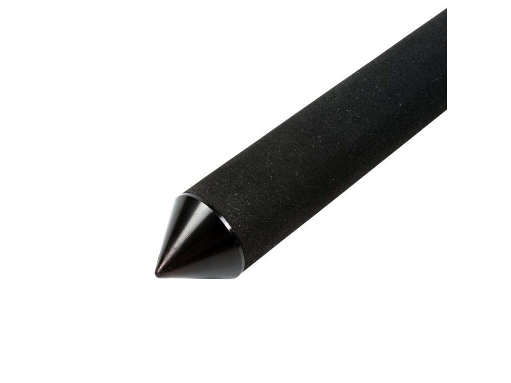Rukojeť je potažena příjemnou, smršťovací fólií a je z jedné strany ukončena speciální, špičatou CNC obráběnou, hliníkovou zátkou a z druhé CNC obrobeným, hliníkovým, rozpěrným křížem s drážkou pro izotopové světlo.
