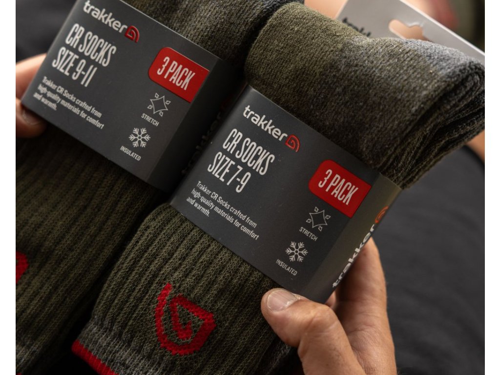 Ponožky Trakker CR jsou vyrobené z vysoce kvalitních materiálů pro maximální pohodlí a teplo. Ponožky jsou dodávány v balení po třech párech a mají zesílenou spodní část pro zvýšení odolnosti.