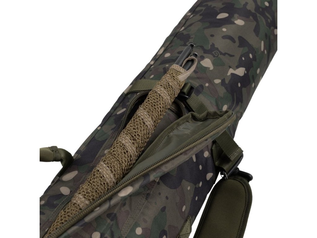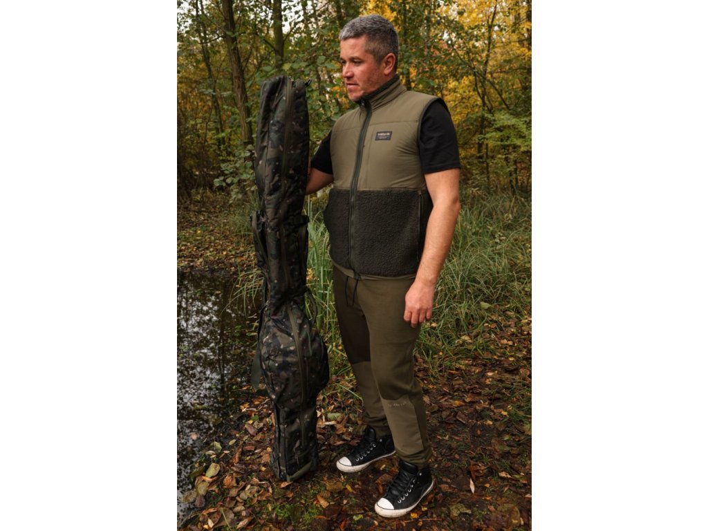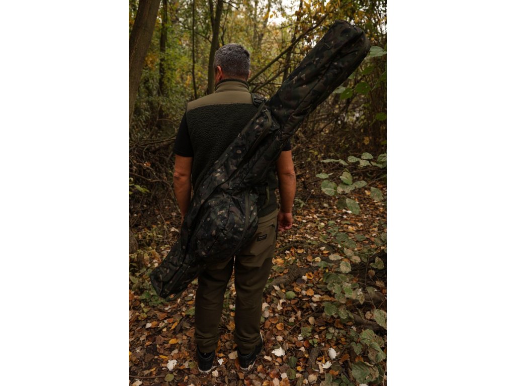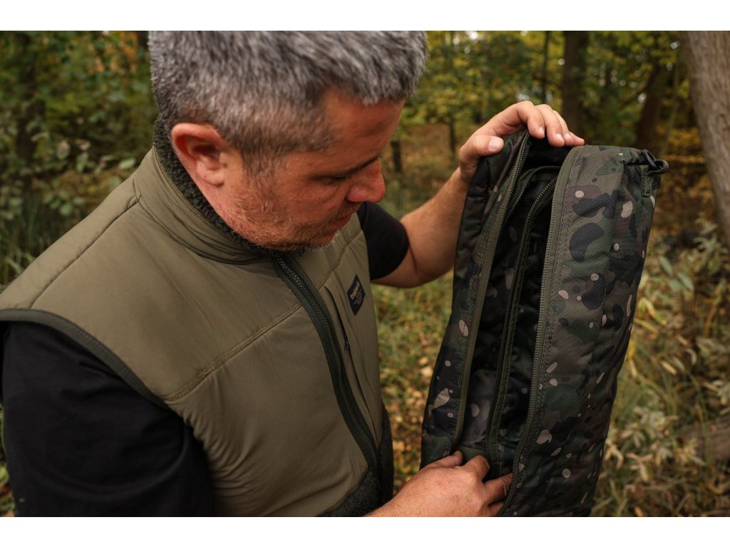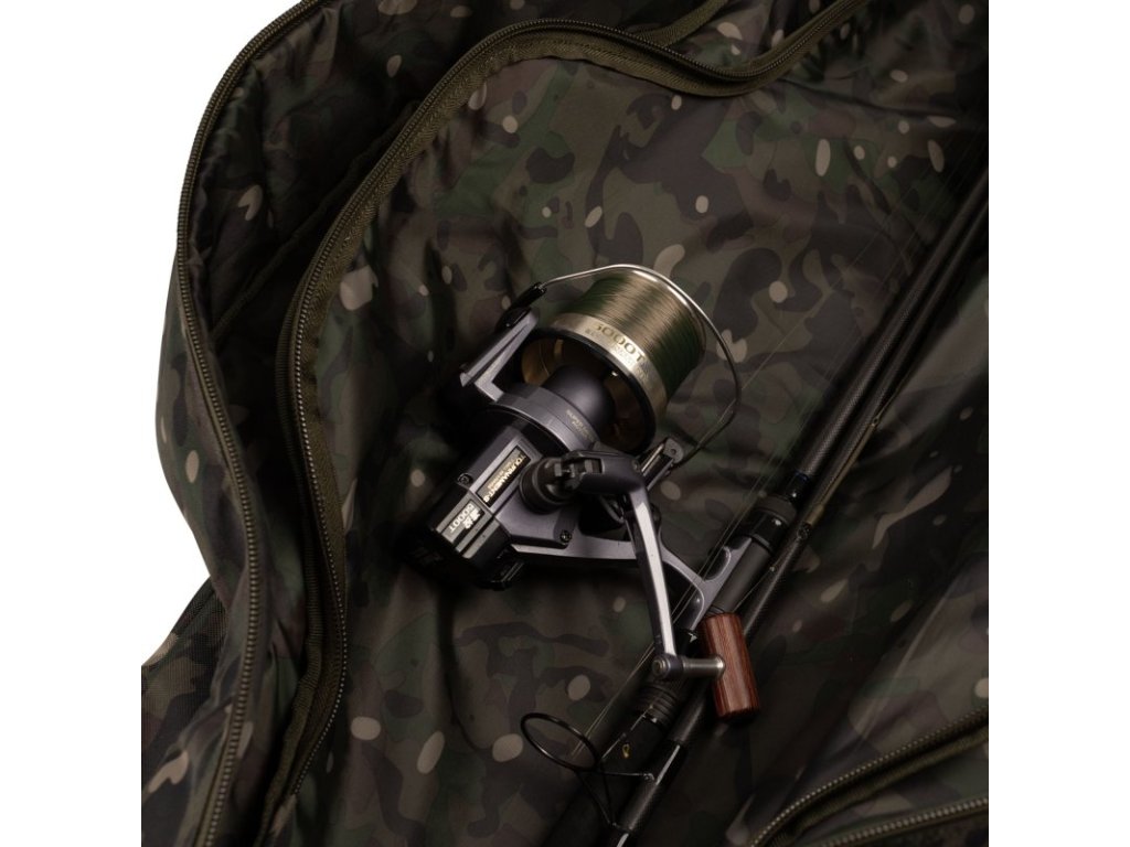 Silně polstrované pouzdro na pruty je vyladěno k dokonalosti a poskytuje velkorysou ochranu pro tři plně připravené kaprové pruty. Dvoucestný, odolný hlavní zip zajišťuje rychlý a snadný přístup k vašim prutům a navijákům. Rozšířené části špiček, spojené s vnitřním polstrováním, pojmou bez problémů 50 mm očka a zajistí, že budou vaše pruty během přepravy chráněny. Každý prut je oddělen vnitřním, polstrovaným pouzdrem a zajištěn na místě pomocí vnitřních neoprenových pásků. K dispozici je i další popruh a elastická smyčka, kterou lze použít pro uložení kobry, takže i ona může těžit z polstrované ochrany. Nadrozměrná část pouzdra na naviják je silně polstrovaná a velkoryse dimenzovaná, aby ochránila i ty největší navijáky. Obě strany pouzdra NXC 3 Rod Sleeves mají velké vnější kapsy na zip, které jsou vhodné pro podběráky, vidličky a další příslušenství. Na zadní straně je na základně velká otevřená kapsa, kam můžete uložit další prut, který lze zajistit pomocí napínacích popruhů. Do další, menší otevřené kapsy na zip lze umístit podběrák nebo uložit distanční tyče. Hned pod hlavním zipem je úhledně umístěná kapsa na zip pro uložení olov.