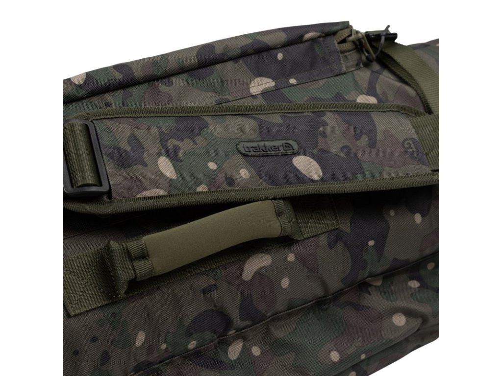 Pouzdro má odnímatelný, plně nastavitelný ramenní popruh, jedno perfektně vyvážené, neoprenové držadlo a dvě neoprenové rukojeti pro snadnější nakládání. Rukojeti jsou umístěny tak, aby udržely vaše navijáky ve vzpřímené poloze a mimo jakékoli nebezpečí poškození. Pouzdro můžete kdykoliv zavěsit díky D-sponě umístěné u špiček prutů.