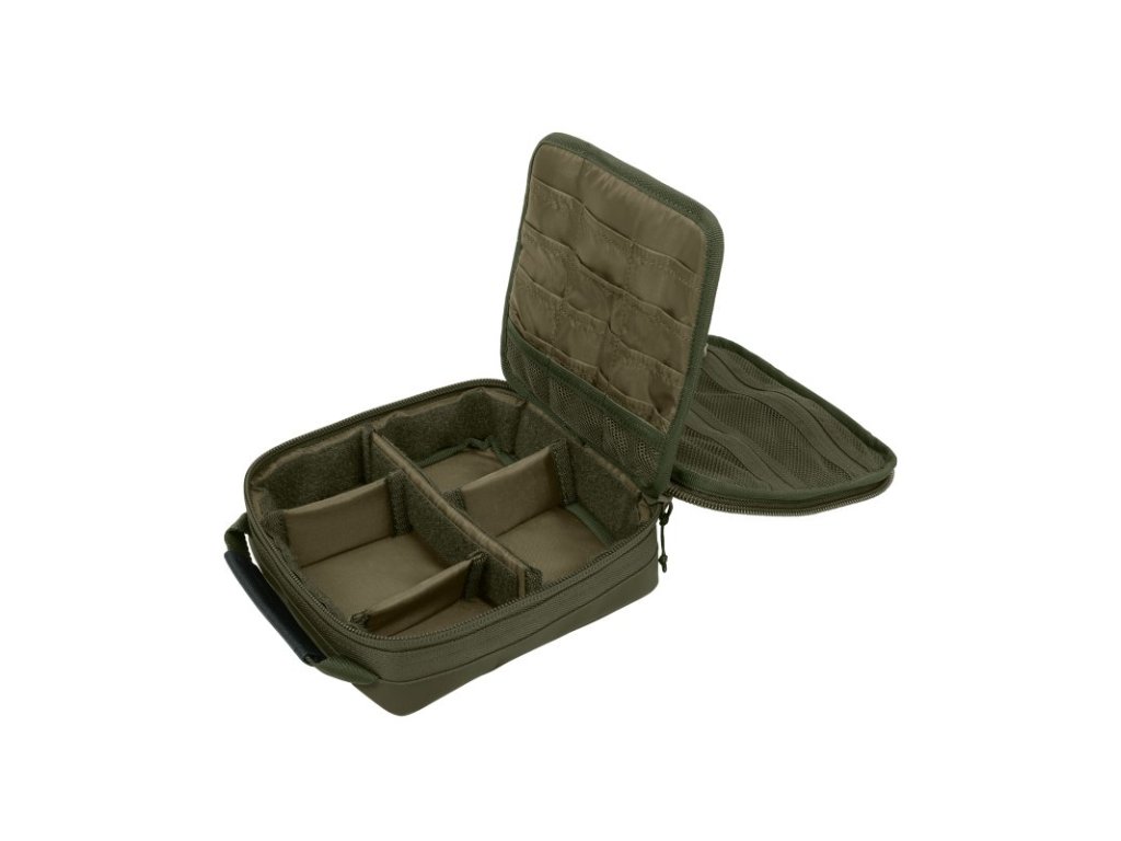 Má dvojité, pevné zipy pro snadný přístup, je vyroben z odolné látky n-dura, vodotěsné dno a madlo pro snadné usazení do anebo z kapes větších přepravních tašek.