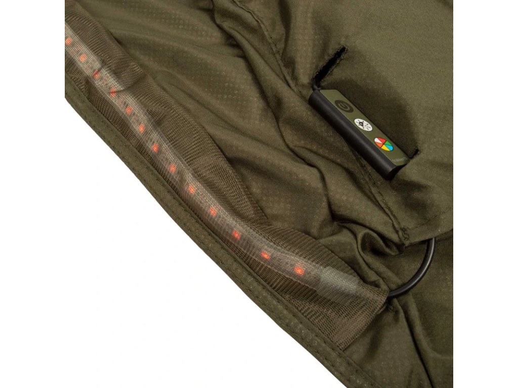 Vylepšete svůj přístřešek Tempest RS o multifunkční parní štít, který kombinuje dodatečné teplo speciální tkaniny a dálkově ovladatelné LED osvětlení. Extra dlouhý světelný pás se 171 LED diodami měnícími barvu je chytře umístěn v přední části přístřešku, aby osvětloval vaší hlavní, pracovní plochu a zároveň minimalizoval průnik světla ven před přístřešek a na vodní hladinu. Světelný pás nabízí šest barevných možností a šest nastavení jasu, takže si můžete přizpůsobit osvětlení podle svých potřeb. Všechna nastavení lze pohodlně upravovat přímo z lehátka díky dodávanému dálkovému ovládání. Alternativně lze stejná nastavení ovládat pomocí integrovaného, ovládacího modulu. Jednotka je napájena dodávanou baterií s kapacitou 16 000 mAh, která také slouží jako nouzová powerbanka pro telefon. Parní štít je vyroben z prodyšné, polyesterové tkaniny se speciálním stříbrným povrchem odrážejícím teplo. Zatímco Skull Cap přináší především stín, aby vás v létě ochladil, tento stříbrný povrch pomáhá udržovat teplo v zimních měsících, čímž vytváří celoroční přístřešek, který vás ochrání před nepříznivým počasím. Vlastnosti produktu přizpůsobitelné osvětlení 171 LED diod se 6 barevnými možnostmi a 6 úrovněmi jasu balení obsahuje powerbanku s kapacitou 16 000 mAh (16k) prodyšná polyesterová tkanina, která snižuje kondenzaci termoreflexní technologie pomáhá udržet teplo během zimních měsíců snadná jednorázová instalace, může zůstat připevněna k vašemu přístřešku dálkové ovládání a možnost ovládání pomocí kabelu vytváří další úložný prostor určeno pro použití s Tempest RS 200 (TR201430) a Tempest RS 200 Camo (TR200560) Technické parametry Vapour Shield Materiál: 100 % polyester Napájení: Minimálně 3A @4,5V Extra dlouhý napájecí kabel, který slouží také jako alternativní zdroj napájení (Minimálně 3A @4,5V) LED pásek IP67 Technické parametry Power Pack Kapacita: 16000 mAh/3,7V (59,2Wh) 2× USB výstup 5V-3A 1× USB výstup/vstup 5V-3A Micro-USB vstup 5V-2ADoplňkové parametry