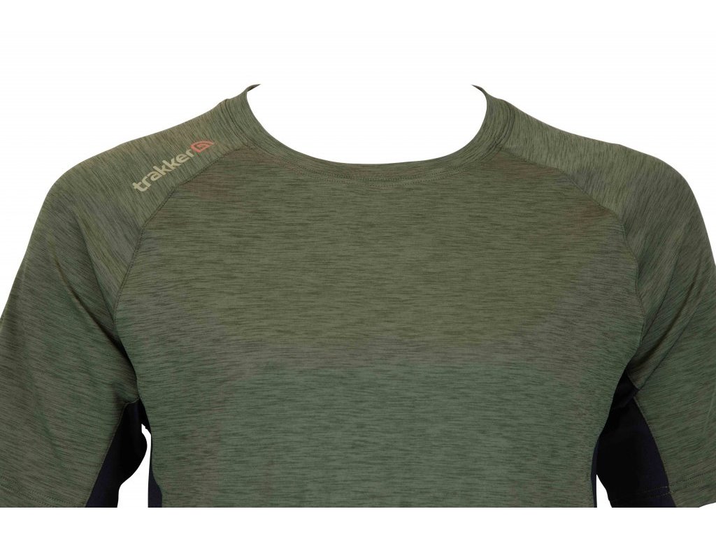 Toto sportovní triko má žíhavý design v khaki barvě. Po stranách se nacházejí kontrastní černé, prodyšné panely. Triko je navrženo v tzv. raglánovém střihu a je vyrobeno z příjemného a elastického materiálu. Díky tomu skvěle padne na tělo a nijak vás neomezuje v pohybu ani při nahazování. Jako u všech modelů oblečení značky Trakker, i toto triko je v zadní části mírně prodlouženo, aby vám spolehlivě zakrývalo bedra. Při návrhu trika jsme kladli důraz na použití ve všech rybářských situacích, kam se můžete dostat.