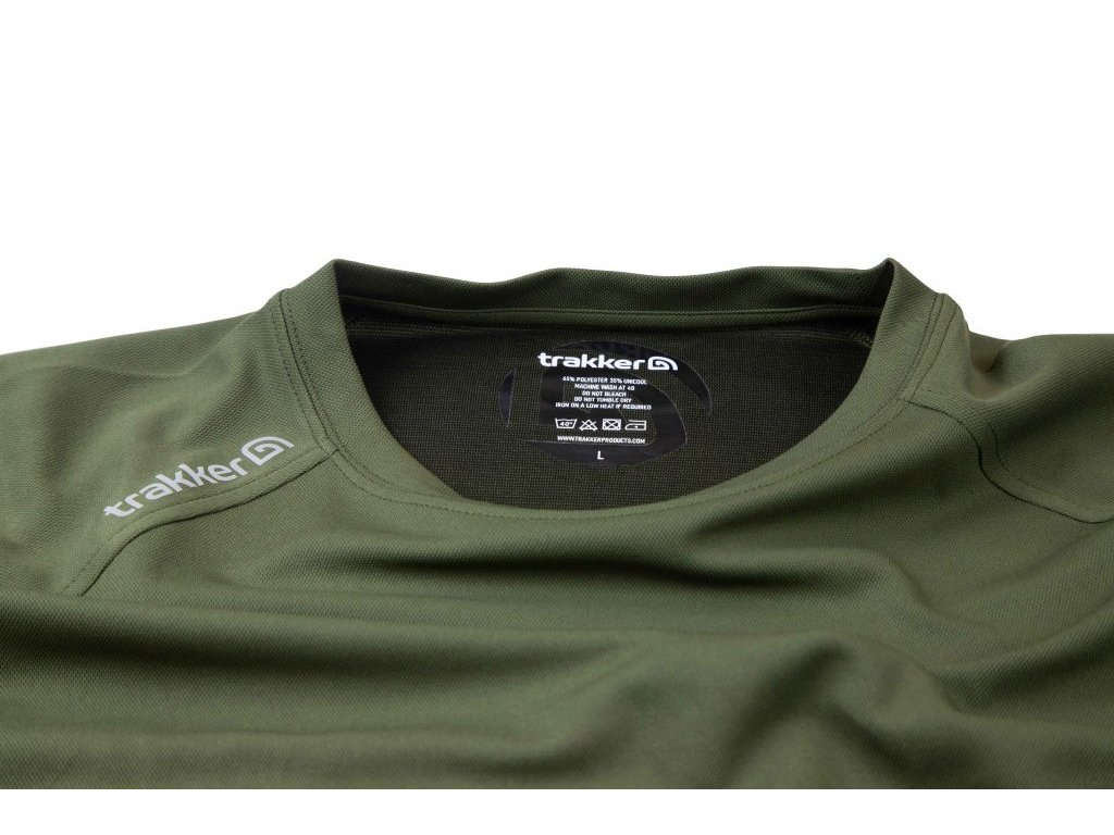 Další výhodou je antibakteriální povrchová úprava materiálu, která zaručuje minimalizuje pach potu, což oceníte hlavně na delších výpravách. Díky elastickému materiálu je triko maximálně pohodlné a neomezuje pohyb při nahazování, krmení nebo běhu. Hlavní výhodou je příjemný, měkký materiál, který se nemuchlá, vysoká prodyšnost a fakt, že triko velmi rychle schne. Na triku se nachází decentní logo společnosti Trakker.