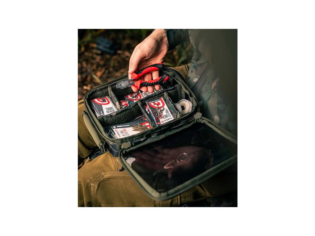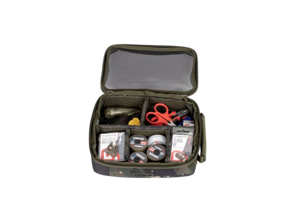 Uspořádejte si úhledně větší kaprařskou bižuterii a příslušenství v penálu NXC Bitz Pouch Large, který nabízí vnitřní přizpůsobitelný systém přepážek a dva odolné zipy pro snadný přístup. Ideální pro skladování dalších drobností, které se tak často nepoužívají, a také perfektně funguje jako velké pouzdro na olova nebo dokonce pro ukládání světel, powerbank atd. Víko a boky jsou z poloprůhledného kouřového PVC, které usnadňuje orientaci při zavřeném penálu. Penál je založený na odolné, vodotěsné základně a boky jsou polstrované, aby chránily obsah. Neoprenová rukojeť umístěná na horní straně pomáhá při vytahování z tašek nebo batohů. Vlastnosti produktu penál pro uložení větší kaprařeské bižuterie, nebo třeba olov přizpůsobitelný systém přepážek víko a boky z kouřového PVC usnadňují výhled při zavřeném penálu vysoce odolný dvojitý zip pevná, vodotěsná základna z PVC a polstrované boky neoprenová rukojeť v camo provedení z látky n-dura Performance Technické parametry Rozměry (D x Š x V): 25 x 21 x 7 cm Hmotnost: 0,25 kg Materiál: PolyesterDoplňkové parametry