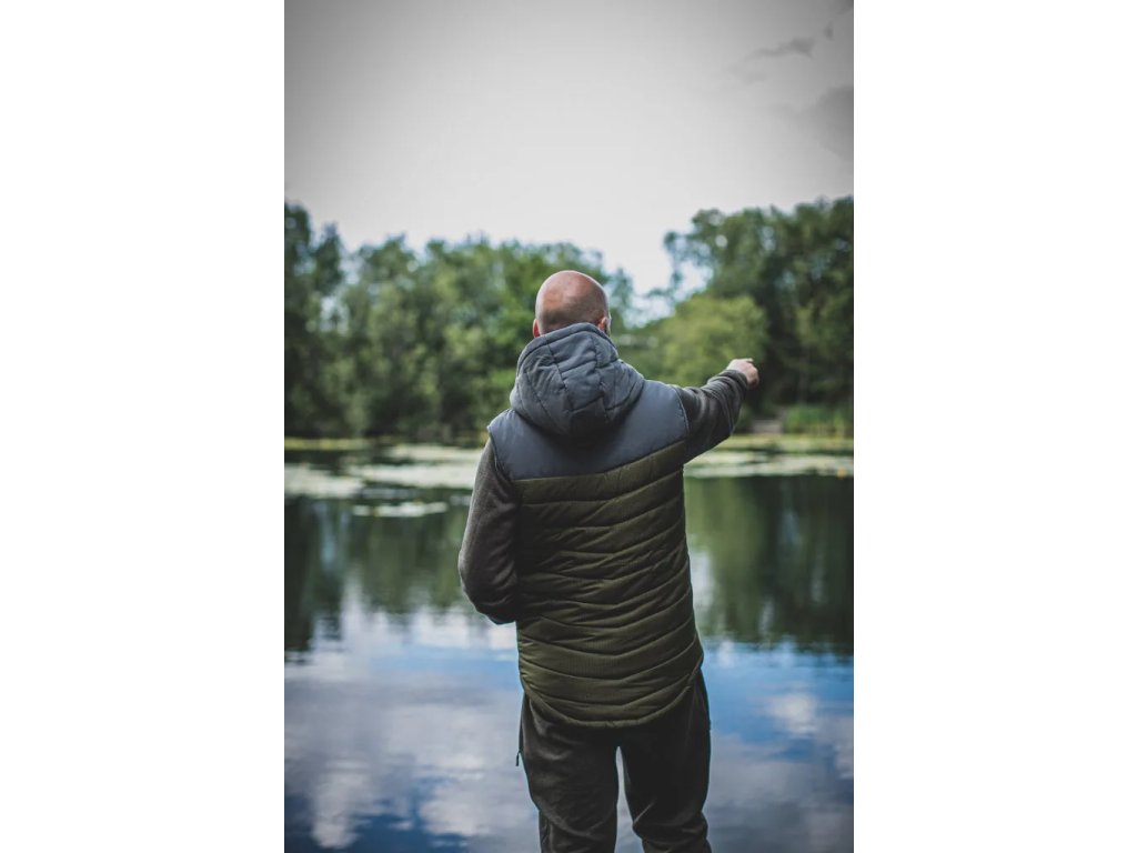 Řada Hexathermic je zpět s novým a vylepšeným vzhledem. Nabízí skvělou izolační vrstvu, která vás při lovu kaprů udrží vždy v teple. Nová kombinace khaki a šedé barvy, kterou naleznete jak na bundě, tak na vestě, je doplněna stříbrnými zipy a decentním brandingem na obou oděvech. Vesta má kapuci pro extra ochranu, prodloužený zadní lem, který chrání před chladným větrem, přední kapsy na zip, které udrží nejrůznější drobnosti v bezpečí, a tónovaný Aztec potisk na podšívce. Ideální vesta pro celoroční použití, neocenitelná i v zimě, pokud chcete být opravdu v teple! Vlastnosti produktu super teplá, zateplená, dvoubarevná vesta prodloužená délka zad pro větší ochranu před studeným větrem nastavitelná kapuce a spodní lem ultra hladká podšívka s tónovým designem kapsy na ruce na zip Technické specifikace Velikost: S – XXXL Jedná se o doprodej.Doplňkové parametry