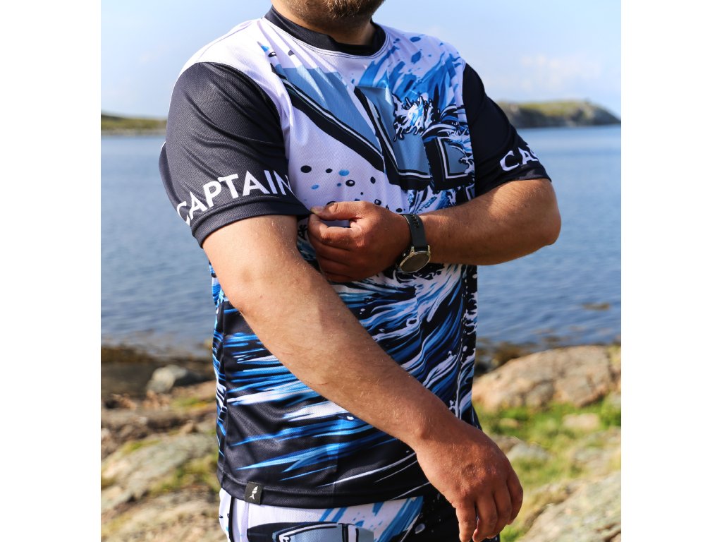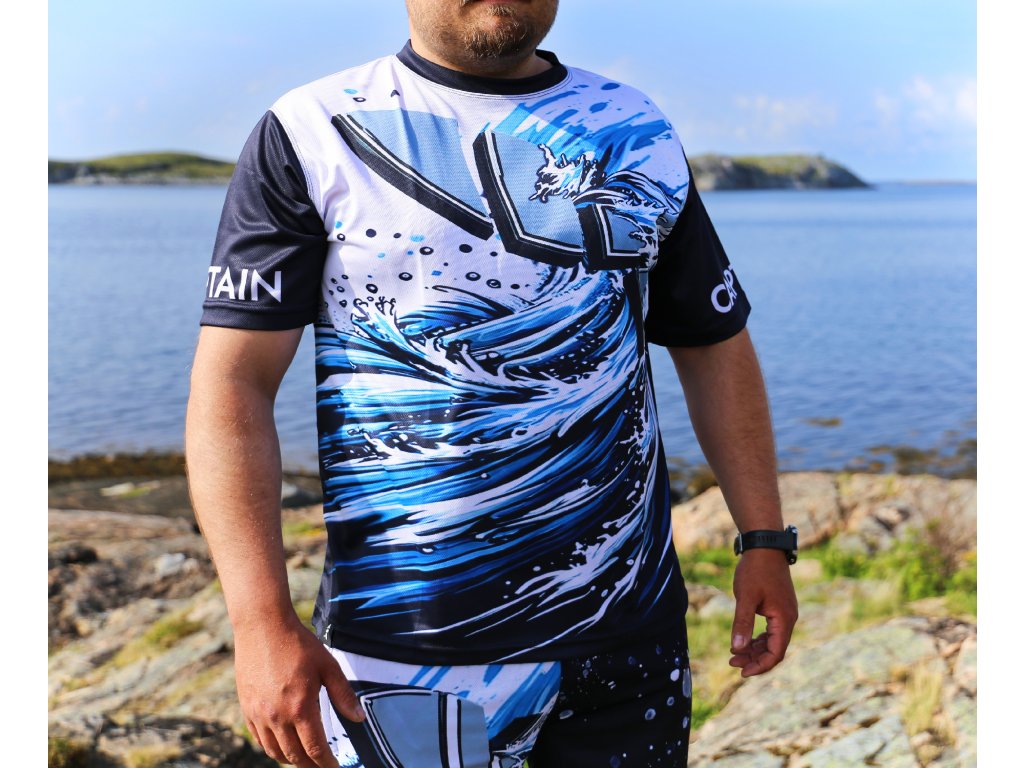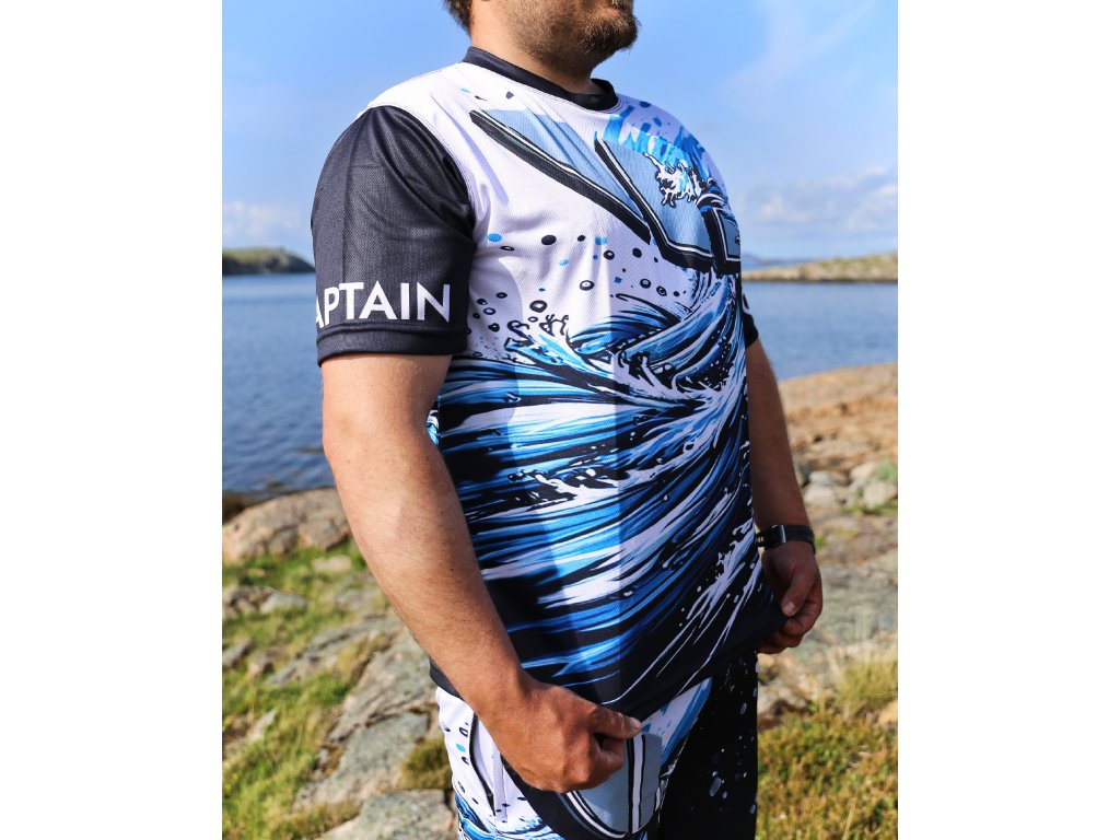Unikátní kapitánská edice triček zaměřená na výkon. Vyrobena z velmi lehkého a přitom odolného materiálu vůči ušpinění či protržení. UV ochrana před sluncem a dokonalá funkčnost je samozřejmostí. Dobře víme, že kapitáni potřebují oblékat rychleschnoucí materiál, který dokáže okamžitě odvádět pot. A právě na to jsme se při vývoji této série zaměřili. Je to ta nejlepší možná první vrstva do jakýchkoliv podmínek. Ať už oblékáte samotné tričko, či navíc mikinu nebo bundu, vždy potřebujete odvádět přebytečný pot a cítit se dobře. Spolehnout se můžete také na nemačkavost materiálu. Nemusíte si tedy lámat hlavu se skládáním a řádným uložením trička do skříně, kufru či batohu. Dokonce pokud tričko srolujete do tvaru válce, bude potom co si jej oblečete vypadat stále skvěle. Pokud se rádi plavíte po moři několik dní v kuse a potřebujete se spolehnout na výkonný materiál, bude pro vás tato série tou správnou volbou. Originální grafické zpracování s motivem mořských vln i nápisy captain na obou rukávech dozajista zaujmou vaše okolí.