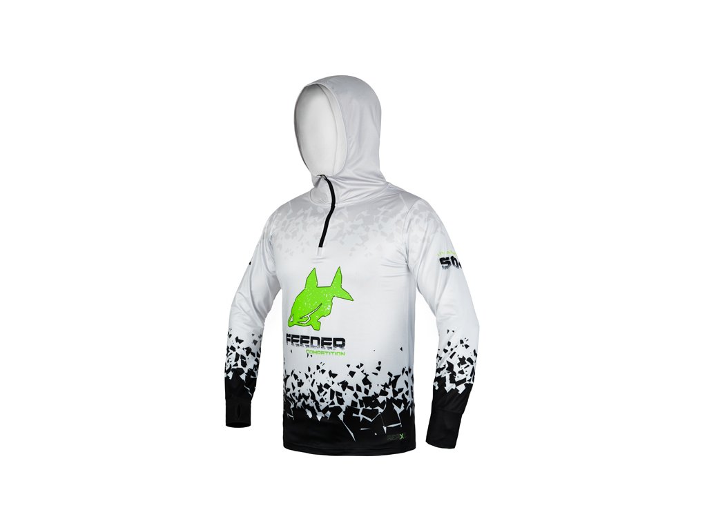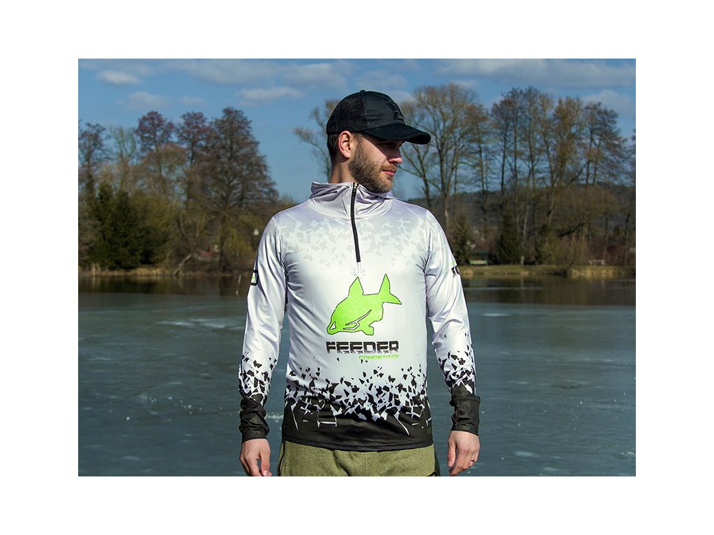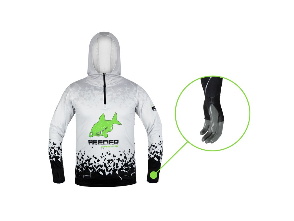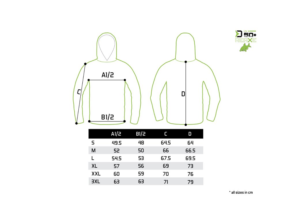 Triko s kapucí Delphin UV ARMOR 50+ poskytuje důkladnou ochranu před přímým slunečním zářením během letních dnů. V tomto případě potěší zejména všechny příznivce feederové techniky, díky originálnímu Reaxe designu. Použitá látka s ochranou UPF 50+ zabrání spálení citlivé pokožky a zároveň na dotek příjemně chladí i během nejteplejších dnů. Mysleli jsme také na nejpřehřívanější část těla, hlavu. Triko je vybaveno výrazně vyvýšeným límcem a kapucí, ale také prodlouženými rukávy s otvory na palec, což zvyšuje ochranu rukou. Velkou výhodou příjemného, elastického materiálu je schopnost rychlého vyschnutí v případě namočení během lovu. Samotné tričko je vysoké kvality, stejně jako použitý barevný potisk. Nabízíme je v široké škále velikostí od S až XXXL. Designově je tričko laděno do bílé barvy s šedou a černou grafikou, která je doplněna naším vlastním motivem cejna ve výrazné zelené barvě. Složení: 90% polyester, 10% elastanDoplňkové parametry