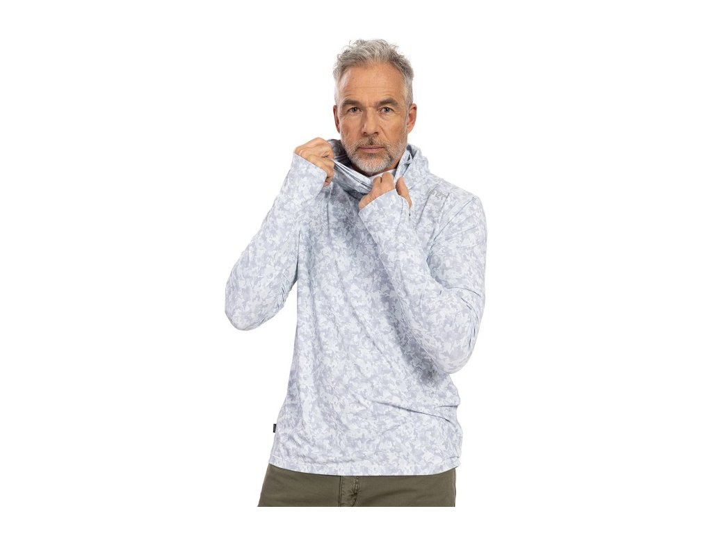 Tričko UV skin má UPF ochranu 50+, reflexní prvky i speciální ochranu obličeje – kapuci s připínacím perforovaným tunelem. Motiv sumčí kůže,typický pro celou kolekci VAGNER, je tenotkrát světlý; to aby ti v něm nebylo horko.