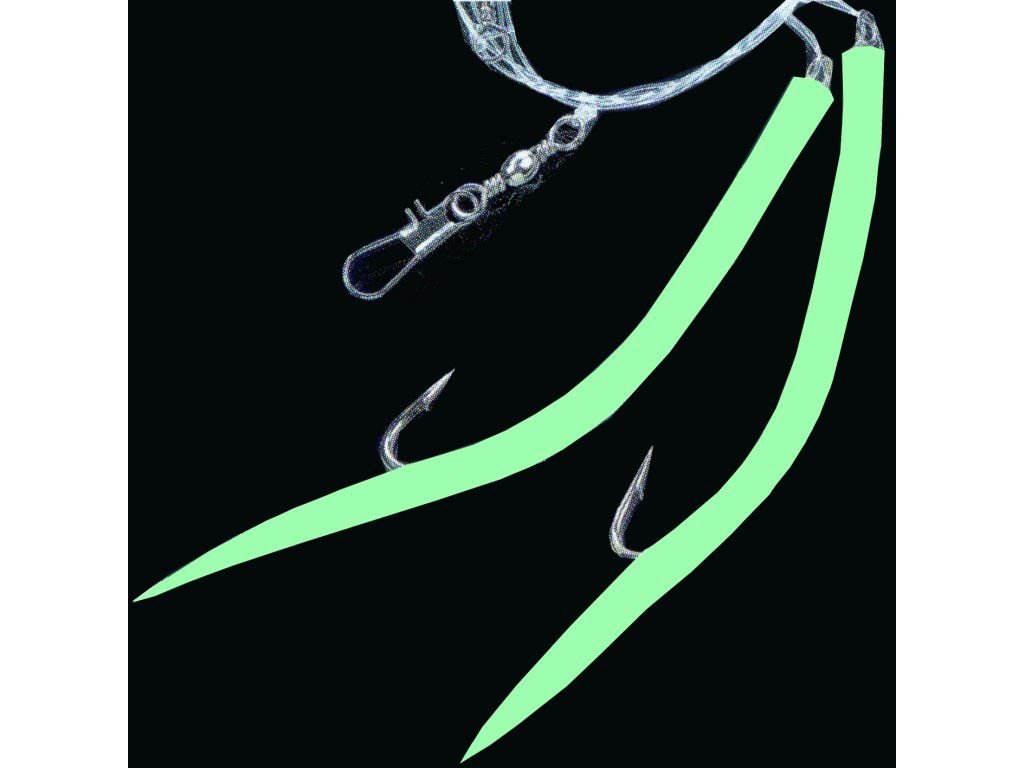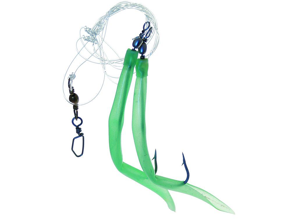 Nástraha na moře, tyto montáže doporučujeme na použití s ráhnem. Tento mořský návazec je určený na pilkrování. Dvě zelené trubičky s fosforovým koncem. Návazec vhodný na tresky a polaky.