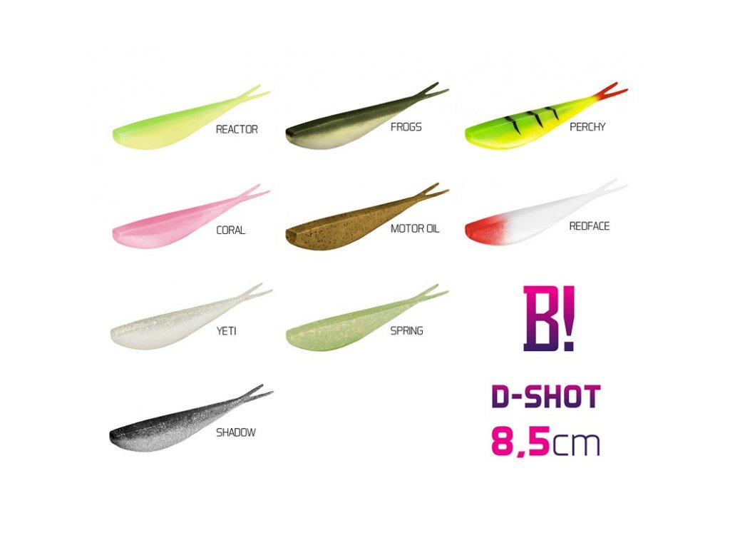 Velmi účinná měkká nástraha s tzv. vlaštovčím ocasem. Nástraha výborně pracuje ve vodě a svým přirozeným pohybem dokáže vyprovokovat i opatrného dravce. Na výběr je z mnoha zajímavých barev, podle vašich preferencí. Určitě oceníte i samotný materiál nástrahy. Ten je dokonale elastický, příjemně měkký a díky své houževnatosti i neuvěřitelně odolný a trvanlivý. Navíc extrémní bomba! Nástrahy mají velmi výrazné rybí aroma, které není způsobeno tradiční metodou potřením aromatizovaným olejem. Toto aroma je totiž přimícháno do základního materiálu a proto má mnohem delší trvanlivost. Kromě toho je D-SHOT materiál SLANÝ, což znásobuje atraktivitu pro predátora. To zaručuje nespočetné hodiny pravé rybářské euforie u vody! Hmotnost nástrahy: 2,25gDoplňkové parametry