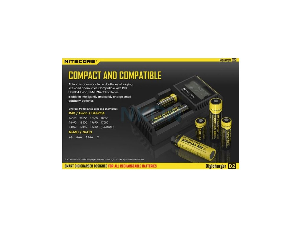 Univerzální a inteligentní nabíječka, která je kompatibilní s většinou válcových dobíjecích akumulátorů. Díky tomu odpadá nutnost pořizovat více různých nabíječek. Nabíječka automaticky rozpozná typ baterie – Li-ion, Ni-MH nebo Ni-Cd – a po ručním nastavení si poradí i s LiFePO4 články.