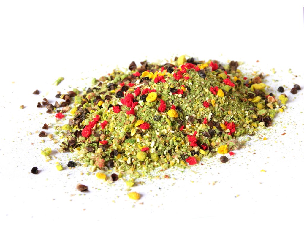 Nová generace základních krmiv v ekonomicky výhodném 2850 gr. balení. Krmiva jsou vhodná pro použití do krmítek i pro vnadění rukou. Základem těchto krmiv jsou podobně jako u těch nejlepších řad mletá aromatizovaná pečiva, biskvity, semínka a další skutečně účinné komponenty. Díky tomu mají krmiva V1 mnohem vyšší účinnost než běžná krmiva za podobnou cenu, která jsou postavena na „ochucených šrotech“. Již při pohledu na krmení V1 v suchém stavu je zřejmé, že obsahuje skutečné komponenty různých zrnitostí a tím zajišťuje správnou konzistenci a optimální práci po vhození do vody.Doplňkové parametry