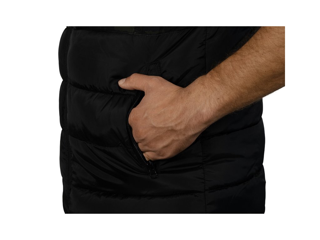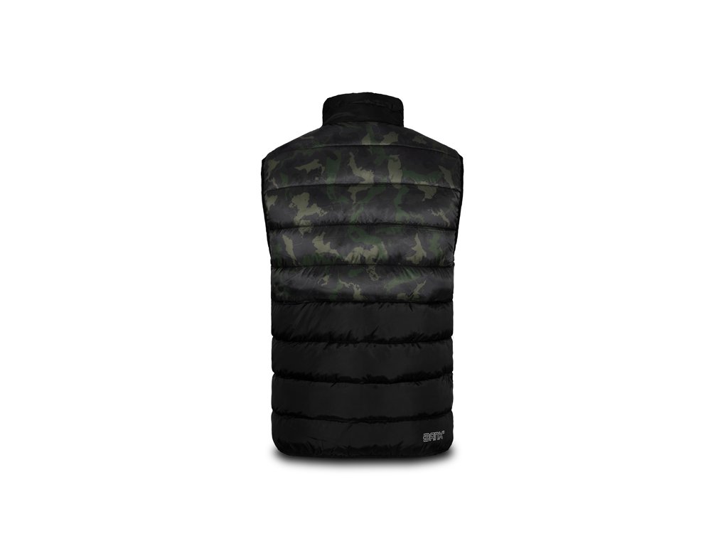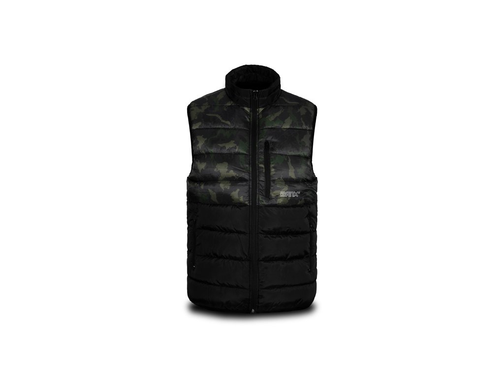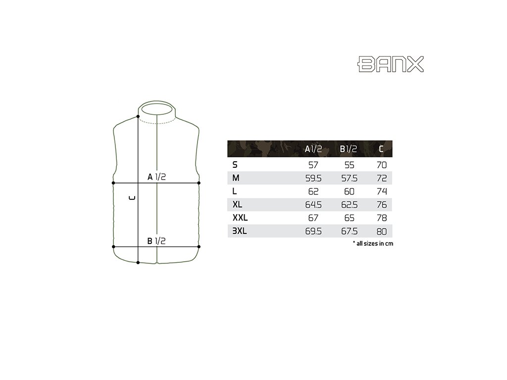 Zateplená vesta přinášející skvělý tepelný komfort během chladných, podzimních či zimních dní. Je vyrobena z tkaniny, která je příjemná na dotek a zároveň snadno udržovatelná, což je velmi praktické při použití během rybolovu a jiných outdoorových aktivitách. Vesta je zároveň příčně prošívaná, což vytváří stylový vizuální prvek produktu. Výplň vesty je extra lehká a zajišťuje výborné termoizolační vlastnosti. Zapínání je zajištěno pomocí kvalitního zipu, překrytého z vnější strany tkaninou, což zvyšuje jeho odolnost vůči vnějším podmínkám. Na obou stranách se nacházejí dostatečně velké kapsy na ruce nebo pro odložení potřebného příslušenství. Vesta Banx disponuje také vyvýšeným límcem pro lepší překrytí krku a šíje při nízkých teplotách vzduchu. Design se skládá z černé barvy, kterou stylově doplňuje naše patentovaná kamufláž BANX. Díky této kombinaci ji můžete využít nejen při rybolovu, ale také k běžnému nošení. Podle přiložené velikostní tabulky si prosím zkontrolujte vyhovující velikost. Materiálové složení: 100% Polyester Pojem BANX vyjadřuje patentovanou kamufláž z dílny značky Delphin, která v sobě nese hluboký vzkaz. Jedinečné designové prvky, ze kterých je složená, jí dodávají nezaměnitelný charakter a dělají z ní více než jen vizuální vzor. Kamufláž BANX zobrazuje přesně to, co spojuje naši rybářskou vášeň napříč celou Evropou. Jsou to jezera, řeky či jiné vodní plochy. Od vod rumunského pobřeží, přes vodní nádrže na Slovensku až po ikonická jezera Evropy napříč Německem, Itálií až po úplný západ Evropy ve Španělsku. Právě siluety těchto jezer jsme spojili a vytvořili tak jedinečnou kamufláž s názvem BANX. Není to jen kamufláž - je to mapa. Mapa, která svým precizním designem zobrazuje ty nejznámější revíry Evropy, díky nimž bude vaše výbava vypadat maximálně jedinečně a originálně.Doplňkové parametry