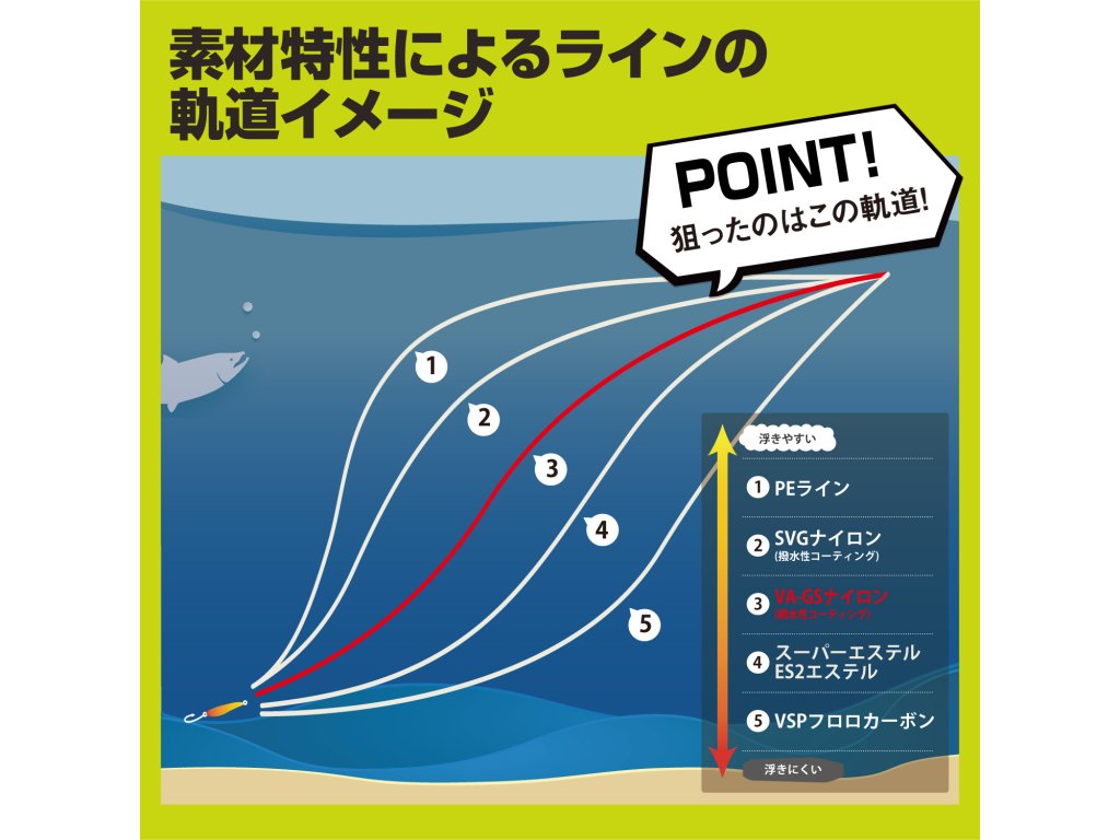 Varivas Super Trout Area VA-GS je nylonový vlasec, který je potažený hydrofilním povlakem SP-S, aby co nejsnadněji procházel vodou. Díky tomu má v porovnání se všemi ostatními typy materiálů nejlepší možný kontakt s nástrahou (nějpřímější dráha vlasec od špičky prutu k nástraze). To má za následek maximální zvýšení citlivosti, kterou oceníte především ve chvílích kdy ryba bere velmi opatrně. Zároveň si vlasec Varivas Super Trout Area VA-GS i přes nízký průměr zachovává velmi vysokou pevnost a oděruvzdornost. Vlasec je na cívce v polovině rozdělen značkou, aby z něj bylo možné udělat dva samostatné náviny po 75 m.