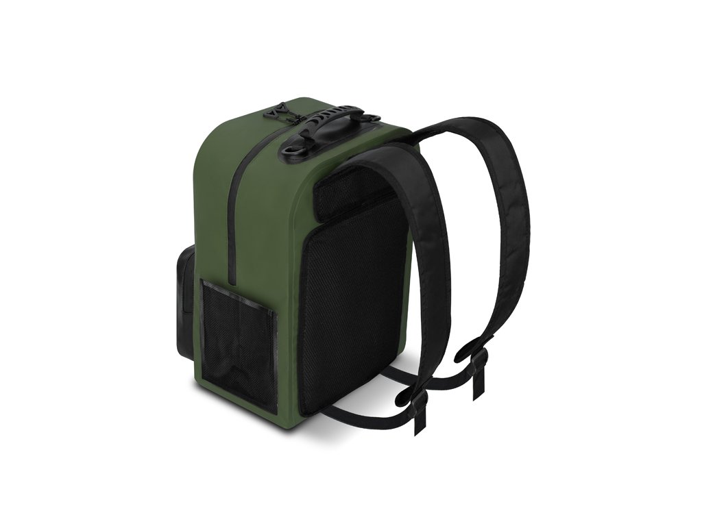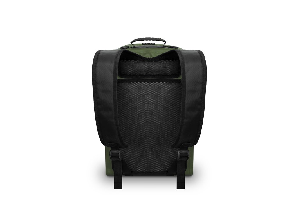 Pohodlí a komfort při transportu umocňují nastavitelné ramenní popruhy spolu s měkčenou výztuhou zad. Pro snadný úchop je na vrchní straně pogumované držadlo a po bocích jsou dvě plastová oka, za která si můžete připnout karabinu například s podběrákem.