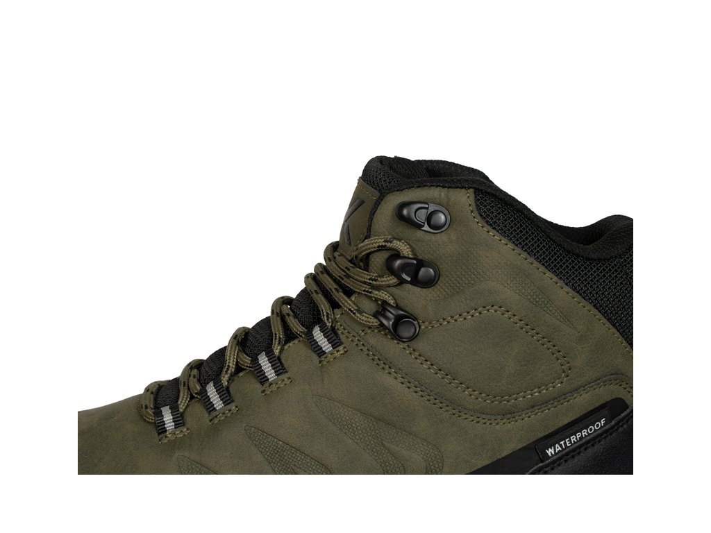 Vrchní část boty je vyrobena z kombinace odolných syntetických materiálů a textilie, které poskytují chodidlu potřebnou oporu a zároveň přispívají k dlouhé životnosti obuvi. Vyšší střih bot pomáhá chránit kotník před podvrknutím, zatímco vyztužená špička a pata zvyšují odolnost boty při používání v náročnějším terénu.