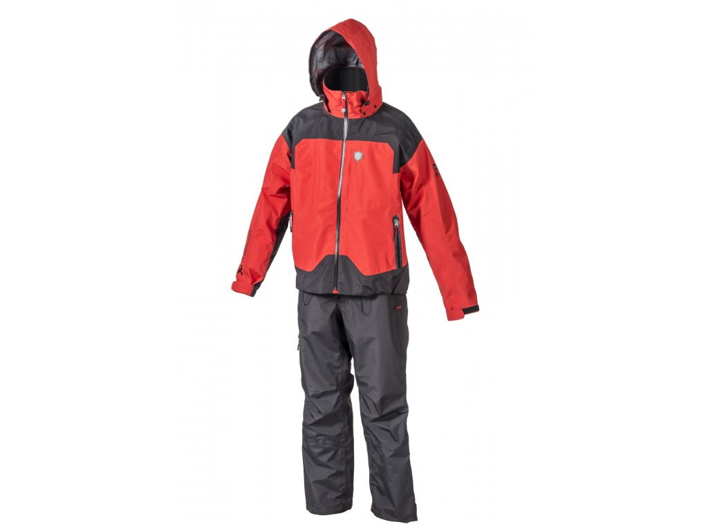 Dokonale funkční oblek pro aktivní trávení času u vody a ostatní outdoorové aktivity v nepříznivých podmínkách. Je vyroben z mimořádně lehkého třívrstvého laminátu M-TECH1512 s vodním sloupcem 15000 mm a prodyšností 12000 g/m2/24h. Samozřejmostí jsou podlepené švy a značkové vodotěsné zipy. Pečlivě navržený střih je přizpůsoben aktivnímu pohybu, nahazování i sezení. Bunda je vybavena odepínatelnou kapucí, dvěma vnějšími kapsami na zip, vnitřní kapsou na mobilní telefon, pružnou stahovací šňůrkou v pase a kvalitními suchými zipy pro stažení rukávů. Kalhoty mají tři kapsy vpředu a jednu vzadu. Všechny uzavíratelné na zip. Zipy ve spodní části nohavic usnadňují oblékání a pásky se suchými zipy umožňují snadné stažení nohavic. Elastický pas se spolehlivým zapínáním usnadňuje výběr správné velikosti a přispívá k velmi pohodlnému nošení.Doplňkové parametry