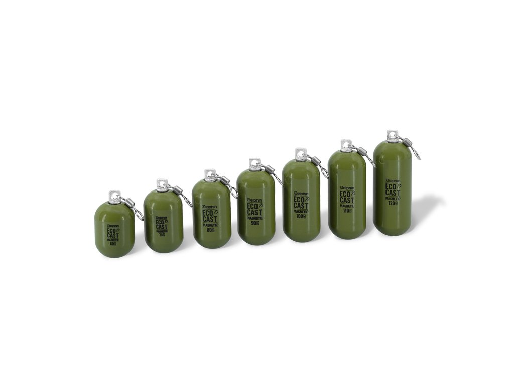 Ekologické zátěže jsou vzhledem k ochraně životního prostředí ve světě rybolovu vyhledávány stále více. Právě proto jsme uvedli do nabídky model zátěže, která je provedena z oceli a umožní vám lov i na revírech či rybářských závodech, kde je zákaz používání olova.Válcovitý tvar zátěže Delphin EcoCAST ji předurčuje zejména k lovu nahazováním na stojatých vodních plochách. Pro pohodlné upevňování do závěsného klipu je zátěž vybavena obratlíkem s větším očkem. Velkou výhodou oceli oproti olovu je i její magnetičnost, což oceníte v případě odpadnutí zátěže, kdy ji můžete pomocí magnetu opětovně vytáhnout z vody.