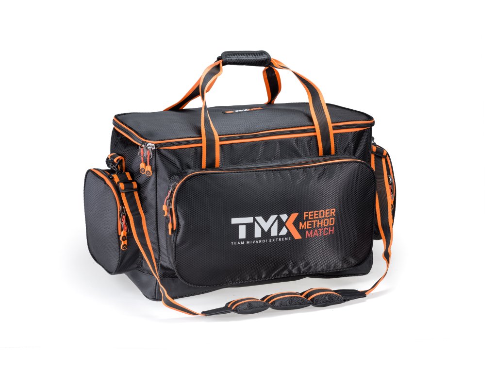 Velká a pevná přepravní taška pro přepravu vaniček, misek, držáků prutů, systémových boxů a dalších doplňků, které potřebujete při lovu na feeder nebo plavanou. Hlavní komora i všechny kapsy jsou díky použitému matreriálu výrazně vyztužené. Taška je opatřena pevnými uchy pro nošení v ruce a nastavitelným luxusním popruhem přes rameno s extrémně silným polstrováním. To zajišťuje dokonalý komfort při jejím nošení i v případě plného naložení. Obaly tašky a další zavazadla série TMX jsou vyrobeny z prémiového, extrémně silného materiálu s luxusním designem ve stylu splétaného carbonu. Tento materiál je zcela nepromokavý a výborně omyvatelný. Na celé sérii TMX jsou použity zátěžové zipy nejvyšší kvality s praktickými táhly Mivardi.