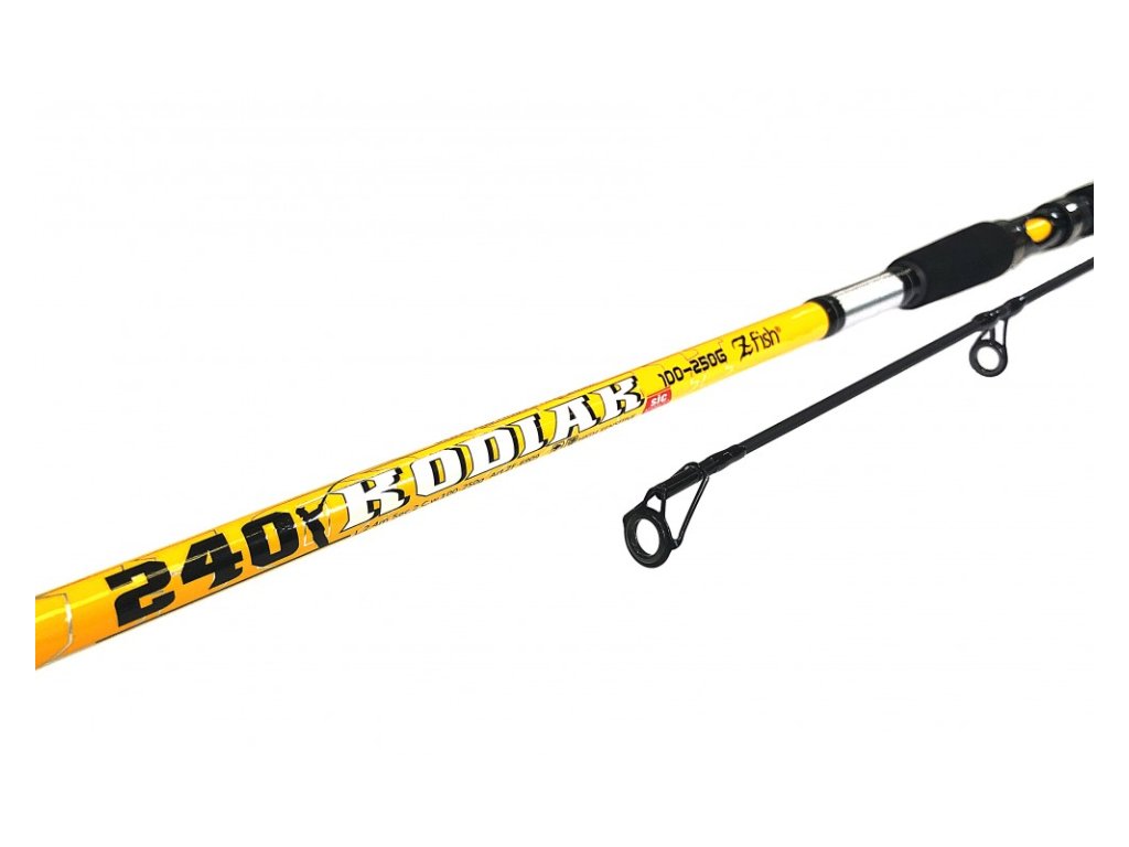 Kodiak je prut určený pro těžkou přívlač, je vhodný jak pro lov sumců a štik, tak pro rybolov v Norsku. Jedná se o dvoudílný karbonový prut o délce 2,40m a vrhací zátěží 100 až 250g. Prut je relativně tenký, lehký a je osazen SIC očky. Kodiak má příjemnou dělenou rukojeť s ergonomickým úchopem. Rybáři při zdolávání jistě ocení jeho plně parabolickou akci, která zároveň zabraňuje zamotání nástrahy při náhozu.