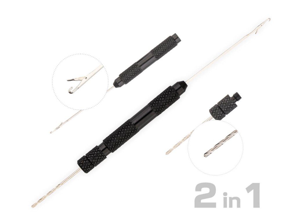 Praktická rybářská jehla a vrták 2v1, určená pro snadnou přípravu a nastražení nástrah, jako jsou boilies, pelety nebo partikl. Sada obsahuje jehlu s háčkem pro provlečení vlasového přívěsu skrz nástrahu a malý vrtáček pro předvrtání tvrdších nástrah. Díky tomu lze nástrahu připravit rychle, přesně a bez jejího poškození.
