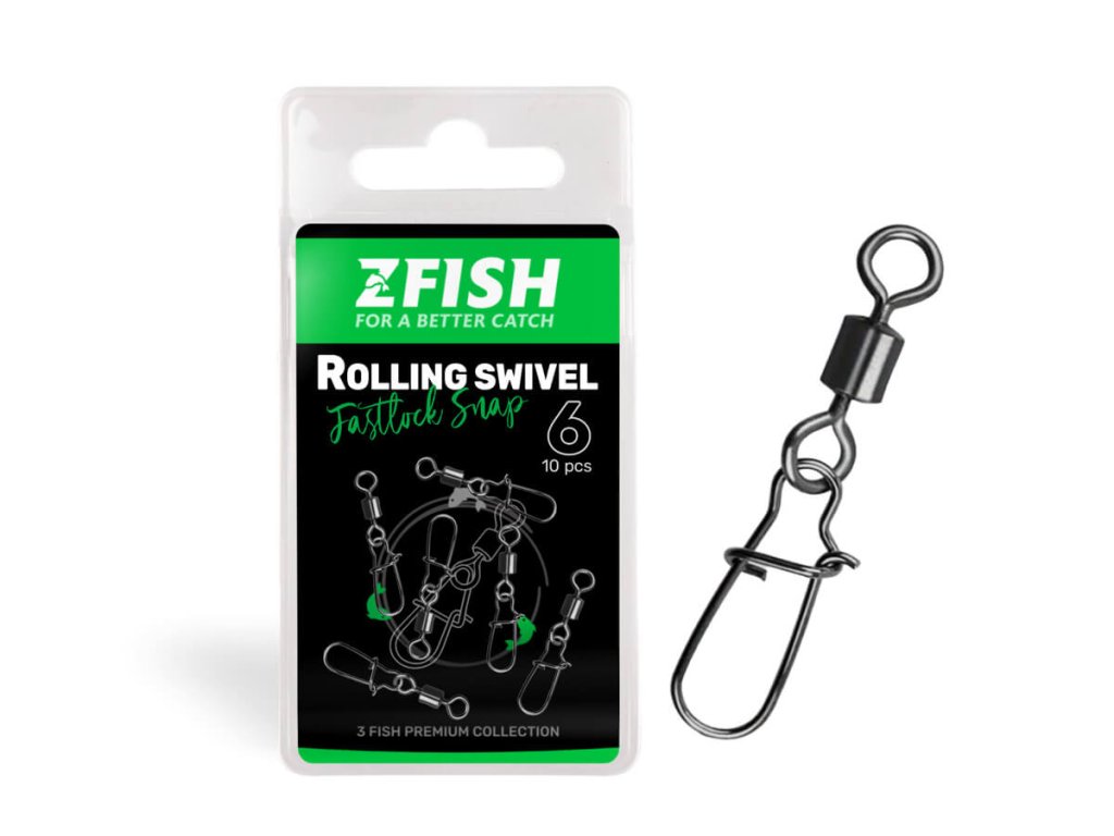 ZFISH Rolling Swivel with Fastlock Snap je klasický pevnostní obratlík s nejběžněji používanou a naprosto univerzální rychlo-karabinou. Tuto oblíbenou klasiku vyrábíme a dodáváme v 6-ti nejběžnějších velikostech s různou nosností. Nicméně tyto nové produkty z řady "3Fish", to jsou obratlíky v prémiové kvalitě. Věříme, že kdo je jednou vyzkouší a pozná ten rozdíl, jiné už nejspíš chtít nebude.