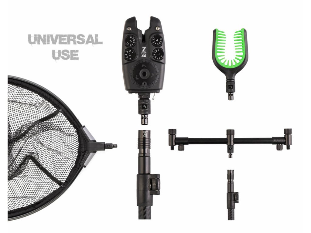 Jedinečná a vychytaná rychlospojka s univerzálním závitem, která funguje s pomocí zámku s kuličkovým ložiskem a speciálního tvaru spoje, který do sebe pasuje a zaručí, že se nerozpojí ani při prudkém záběru do strany. Do horní části spojky jednoduše našroubujte hlásič a spodní část klasicky namontujte na Váš stojan nebo vidličku. Po ukončení rybolovu jednoduše oddělíte a jednotlivé části ponecháte jak na hlásiči, tak na stojanu/vidličce. Při další výpravě stačí jen opět spojit a jste ušetřeni otravného a zdlouhavého šroubování. Spojka je celokovová, kvalitně zpracovaná s černou povrchovou úpravou. Standartní závity pasují na většinu běžných rybářských stojanů a vidliček.
