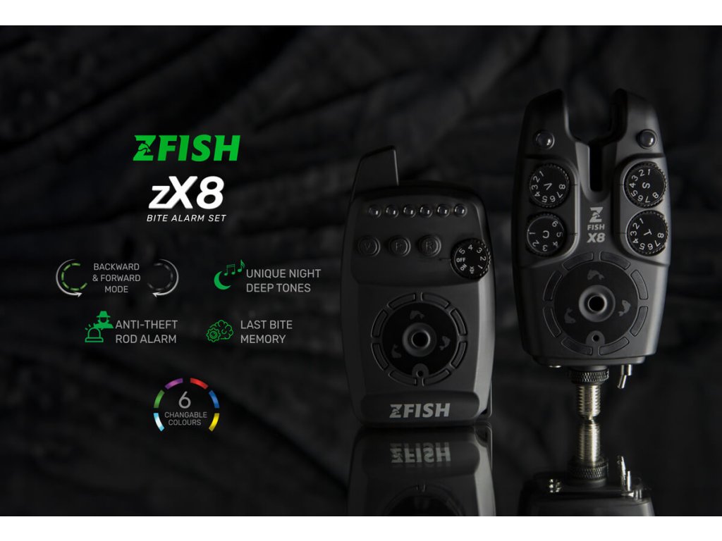 Nová generace hlásičů ZFISH Bite Alarm Zx8 PRO je nepochybně naše nová vlajková loď mezi hlásiči. Verze PRO představuje náš poslední nejvyspělejší model, při jehož vývoji jsme kladli důraz na odstranění všech nedostatků, které měla předchozí generace. Zx8 disponují 6-ti barvami a dokonce 8-mi zvukovými tóny (z nichž 2 jsou zcela unikátní hluboké tóny speciálně navržené pro noční rybolov) a navíc jsou opatřeny alarmem proti krádeži. Další užitečnou funkcí je paměťová dioda záběru, která vám umožní zjistit, zda jste měli “jízdu” (záběr vpřed), nebo takzvaný “padák” (zpětný záběr směrem k vám). Samozřejmostí jsou vibrace příposlechu a snadné nastavení celkové citlivosti a hlasitosti. Nové Zx8 byly testovány v extrémních podmínkách, takže za jejich odolnost proti vodě a prachu, můžeme dát ruku do ohně a navíc bez problémů fungují až na vzdálenost 200 m.